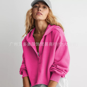 alo跨境吸汗宽松潮牌连帽卫衣女春秋欧美女装v领上衣套头长袖衫