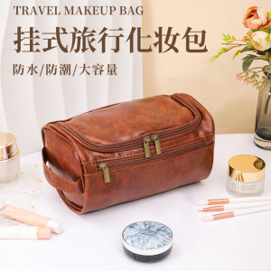 跨境热卖新款男士洗漱包PU防水化妆包大容量便携收纳旅行手提包