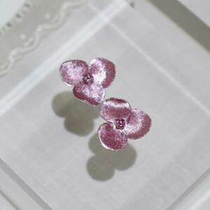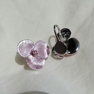粉紫花朵耳夹