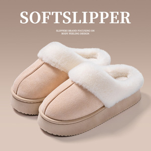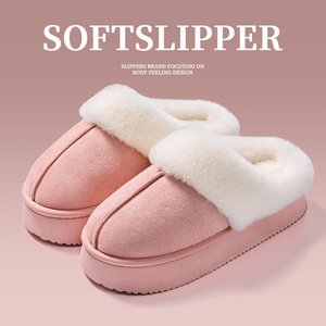 秋冬季棉拖鞋女居家室内防滑保暖厚底4.0公分情侣毛毛拖鞋批发