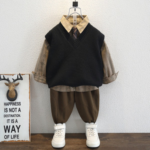 9566男童秋装套装2025新款洋气男宝宝毛衣三件套儿童春秋季潮