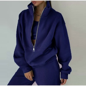 欧美跨进时尚休闲运动居家宽松舒适拉链抓绒针织卫衣卫裤两件女装