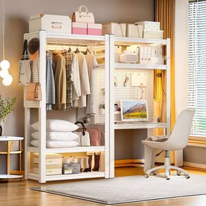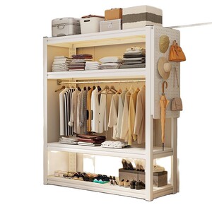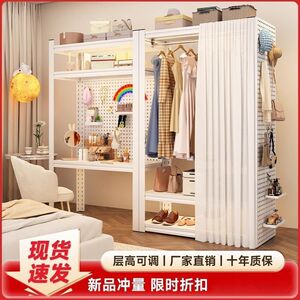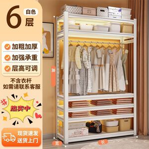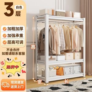家用货架衣柜双层挂衣架钢制衣架收纳架开放式简易衣橱衣柜衣帽架