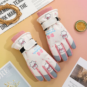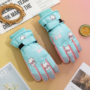 儿童滑雪手套秋冬季可爱卡通太空图案保暖可触屏骑行防水加绒加厚