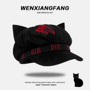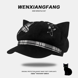 日系复古亚文化黑色朋克宅文化千禧辣妹贝雷帽女夏季百搭八角帽子