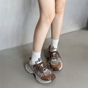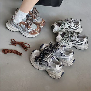 真皮厚底增高老爹鞋女2025秋季新款绑带设计透气百搭休闲运动鞋潮