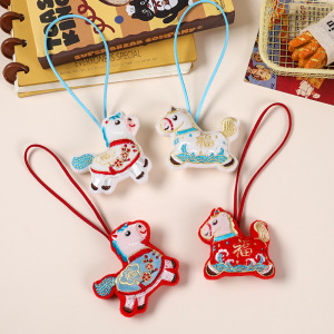 布艺卡通充棉国风小马生肖玩偶吱吱叫挂件童装帽子拖鞋辅料配饰