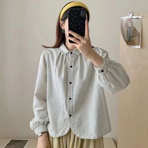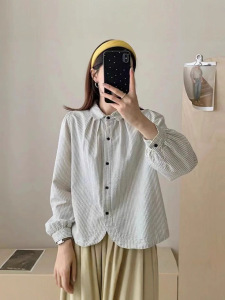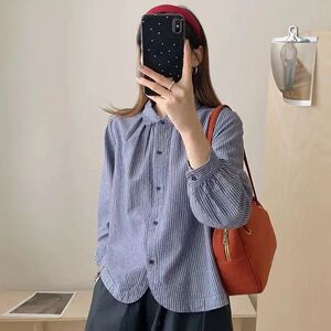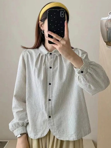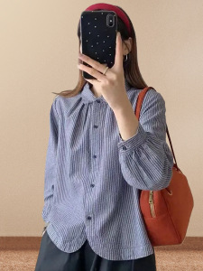 高级感复古拼接条纹长袖衬衫女2025秋季新款宽松休闲洋气百搭上衣