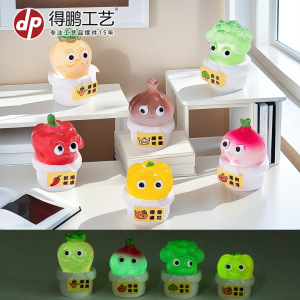 新款夜光情绪蔬菜萌粒公仔树脂摆件微景观diy装饰品配件盲袋摆件