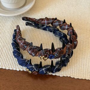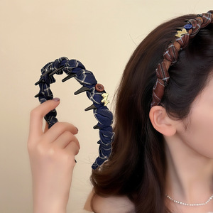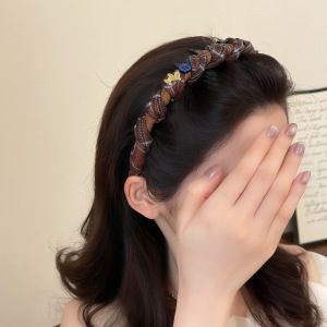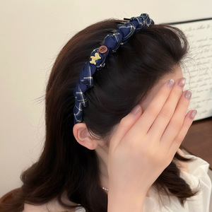 复古格子布艺缠绕带齿防滑发箍女时尚新款高颅顶头箍百搭发卡发饰