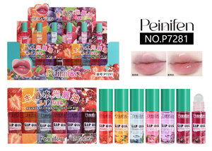 跨境走珠唇油保湿滋润唇膏液补水滚珠口油无色透明水果水蜜桃唇油