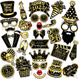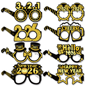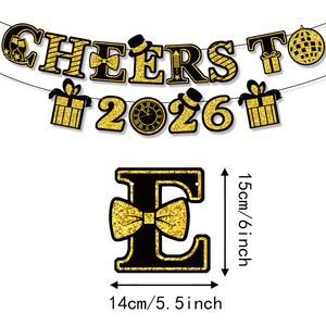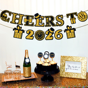 款二新年 一套拉旗(cheers to 2026)一套款二新年黑金眼镜+20印花气球(10黑10黄)