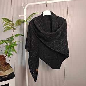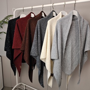 高级感含羊毛大披肩女百搭韩系秋冬保暖亮片三角围巾护颈针织坎肩