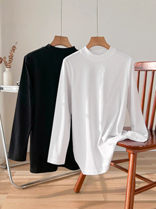 实力工厂爆款中长款遮臀后拼缝棉T恤女小立领圆领宽松长袖打底衫