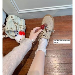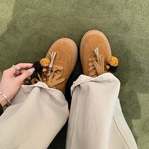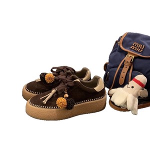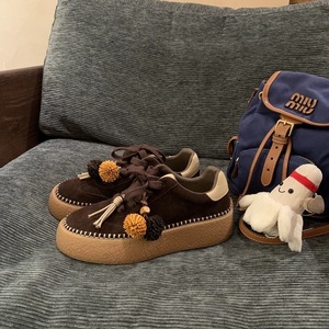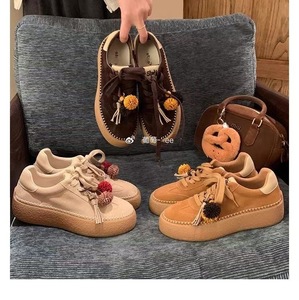 增高4cm~松果流苏圆头厚底休闲板鞋系带德训鞋女多巴胺2025新款4