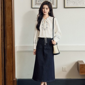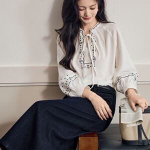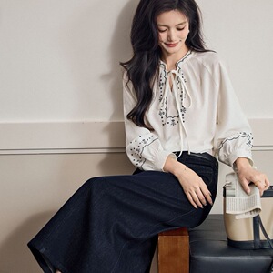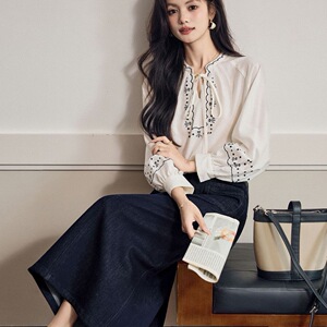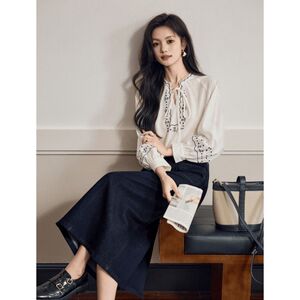 仿天丝刺绣重工长袖衬衫女2025年春秋新款法式复古上衣