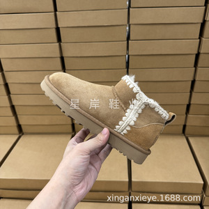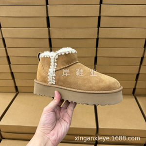 河南桑坡村雪地靴厚底迷你毛线口短靴子女鞋