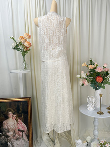 新款酒红色圆领无袖小香风气质短裙蕾丝连衣裙A字连衣裙礼服