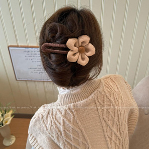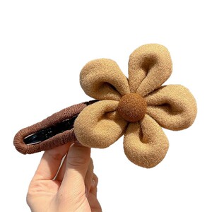 2#奶咖色大花朵鸭嘴夹一个