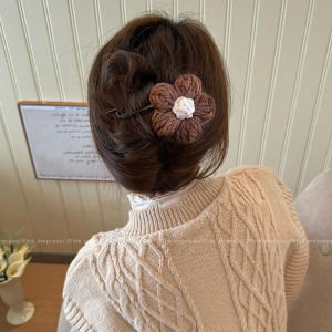 9#咖色花朵扭扭夹