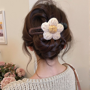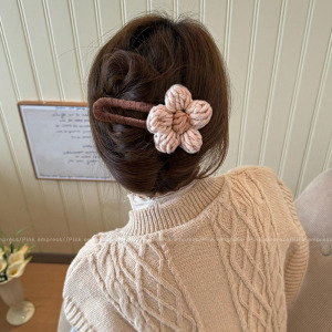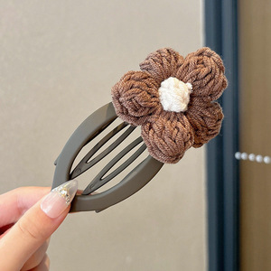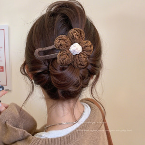 8#咖色毛线花朵12cm鸭嘴抓夹