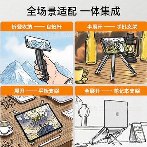 博锐E05变形金刚铝合金手机ipad平板支架 X型笔记本电脑支架 桌面折叠升降磁吸手机支架