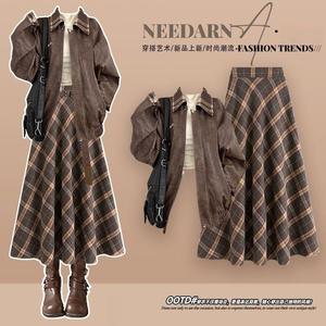 草原新疆旅游穿搭女美拉德皮衣外套早秋季波西米亚废土风连衣裙子