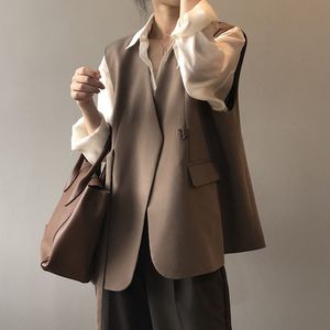 无领西装马甲女咖色V领外搭春秋时尚法式ins西服背心系带马夹外套