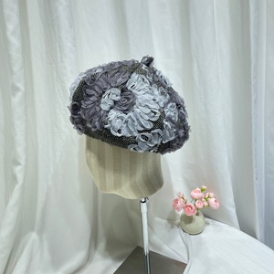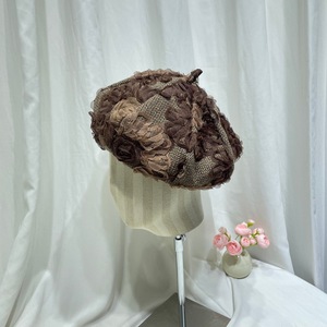 小众设计师款蕾丝花朵贝雷帽女秋冬甜美画家南瓜帽显脸小蓓蕾帽子