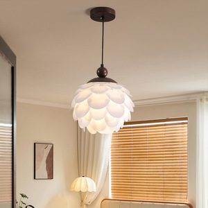 中古奶油风书房主卧室吊灯卧艺术创意松果花朵灯布艺家用餐厅吊灯