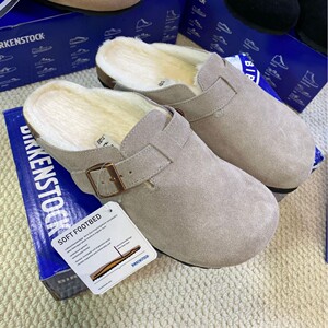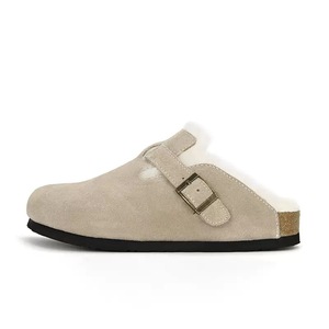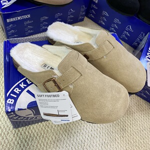 纯原高端牛皮勃肯鞋软木厚底博肯包头半毛毛拖鞋外穿秋冬雪地靴棉