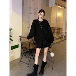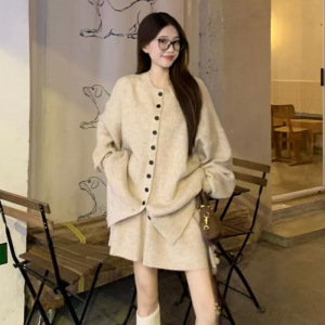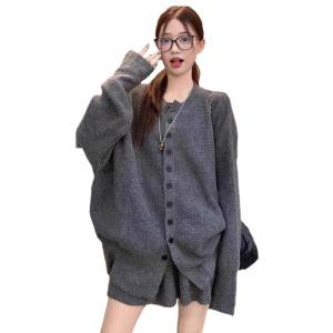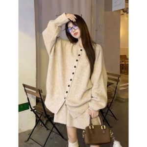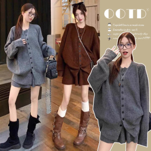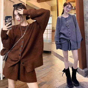 孕妇装秋冬新款宽松毛衣开衫时尚休闲慵懒风短款半身裙甜美两件套