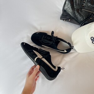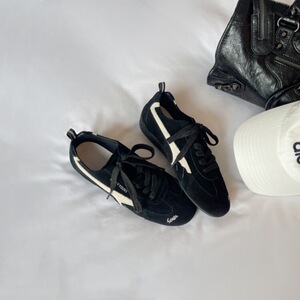 真皮复古黑色德训鞋女2025秋季新款系带百搭阿甘鞋运动休闲赛车鞋