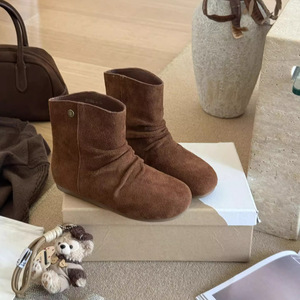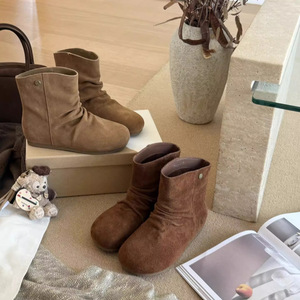 2025秋季新款真皮内增高马丁靴女百搭复古系带小众褶皱短筒靴女