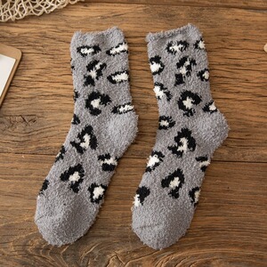 新款珊瑚绒斑马纹袜子女秋冬季加绒加厚保暖袜居家不掉毛睡眠袜