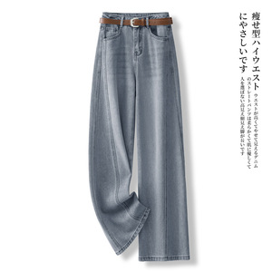 复古蓝色阔腿牛仔裤女2025新春秋提臀小个子镰刀长裤设计感直筒裤
