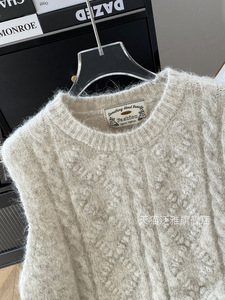 韩系软糯麻花针织马甲女春秋季新款加厚叠穿圆领毛衣背心马夹外搭