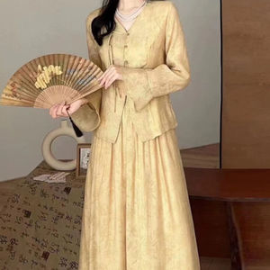 两件套套装两件半身裙长衬衫盘扣中式袖新款复古国风春季