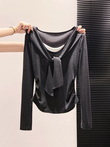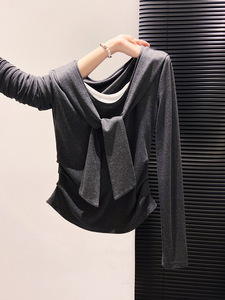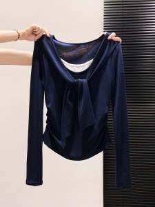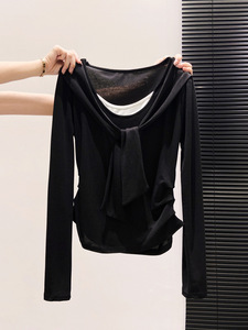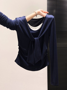 韩系设计感假两件长袖针织衫秋季女装新款披肩外搭叠穿打底衫上衣