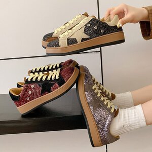 星星亮片小脏鞋女2025秋季复古德训鞋百搭休闲爆闪休闲板鞋女
