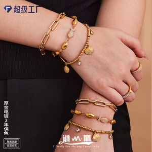 谜丽精抛光面空心椭圆满锆小鱼手工拼接手链高质感不锈钢女式手饰