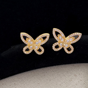 小众设计高质感微镶锆石精致镂空蝴蝶耳夹轻奢气质百搭时尚耳钉