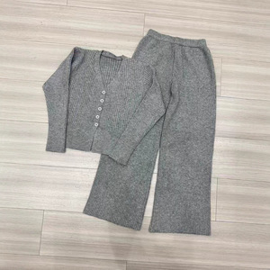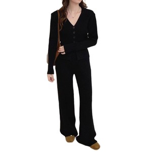 韩系休闲风穿搭套装女秋冬时尚纯色运动针织毛衣阔腿裤两件套装女