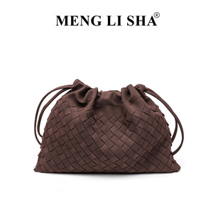 秋冬新款高级感磨砂麂皮手工编织包单肩腋下云朵包时尚手提福袋包