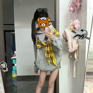 2025春秋款美式格子披肩蝴蝶结绑带连帽卫衣外套上衣