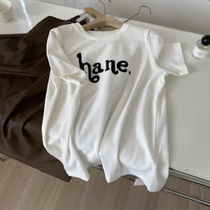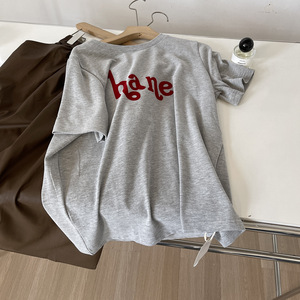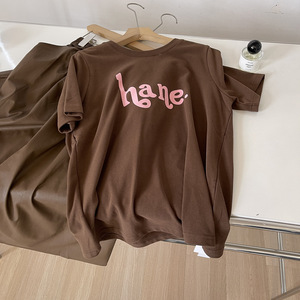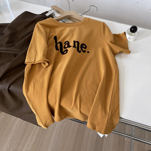 韩版简约植绒字母印花T恤女软糯云朵绒磨毛圆领正肩短袖打底衫秋