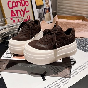 2025新款翻毛皮真皮厚底松糕面包鞋大头小个子增高休闲鞋板鞋女鞋