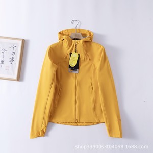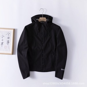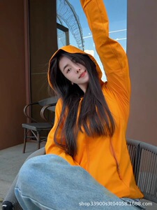 太阳石头家同款女士户外三防保暖软壳纯色连帽抓绒外套