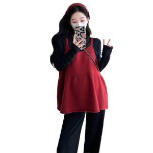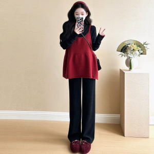 红色背心+黑色打底衫两件套