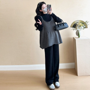灰色背心+黑色打底衫+黑色裤子三件套
